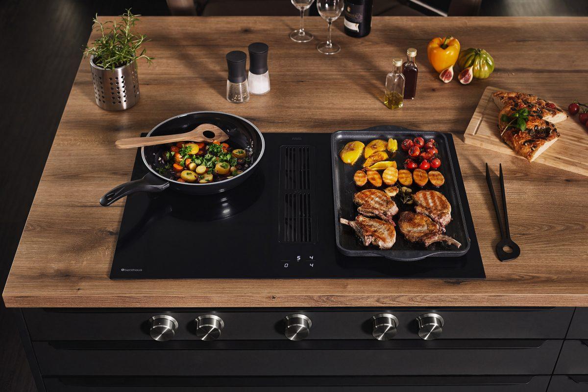 Mit der Brückenfunktion können zwei Felder gekoppelt werden, sodass auch größere Bräter Platz finden. Definierte Temperaturstufen ermöglichen es, Gemüse, Fleisch und Fisch bei optimaler Temperatur zu grillen.