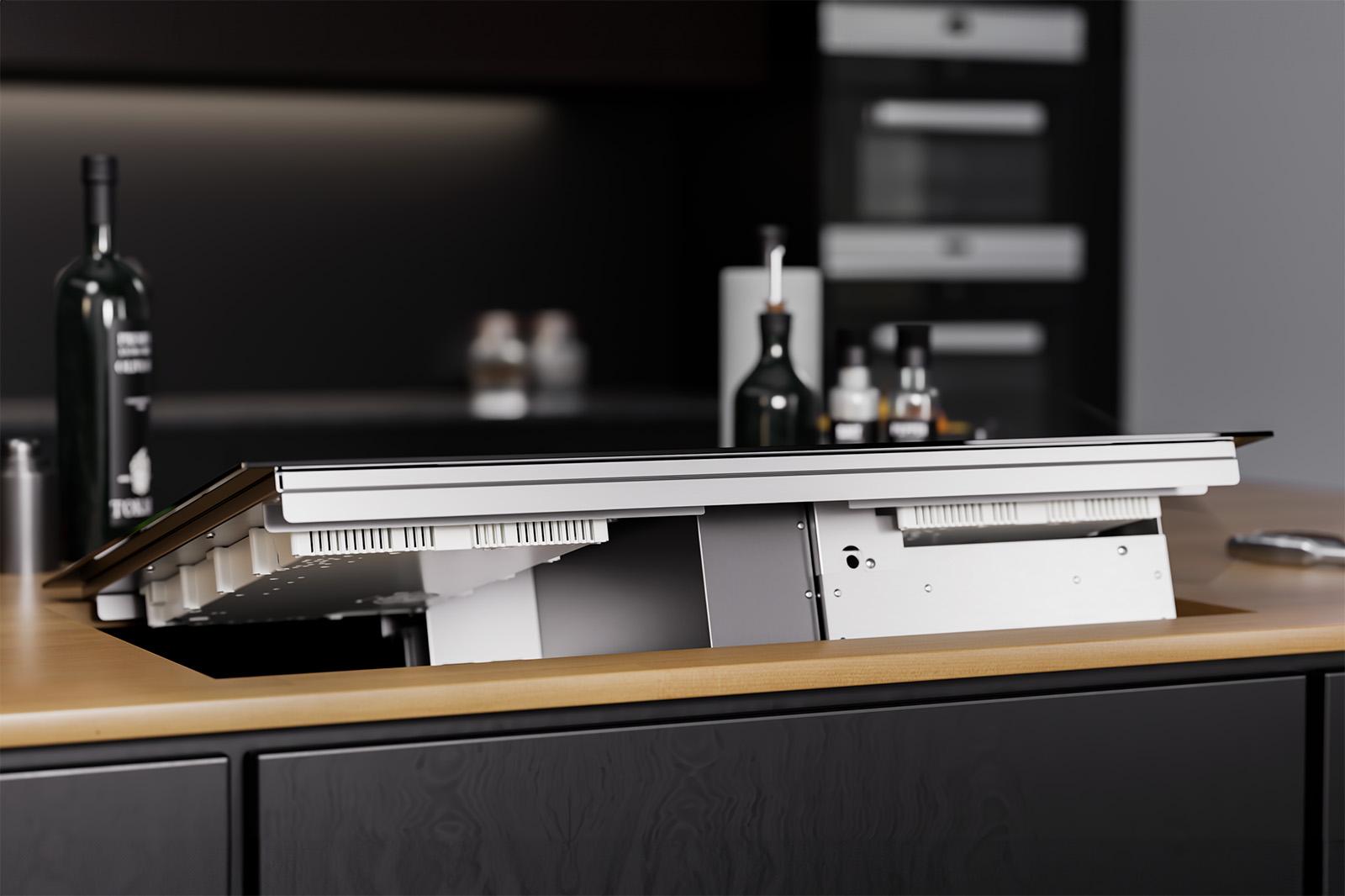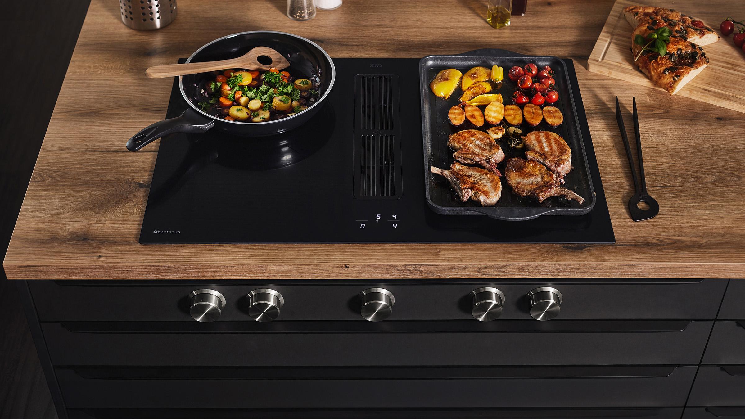 Induktionskochfeld mit Muldenlüfter und Knebelbedienung