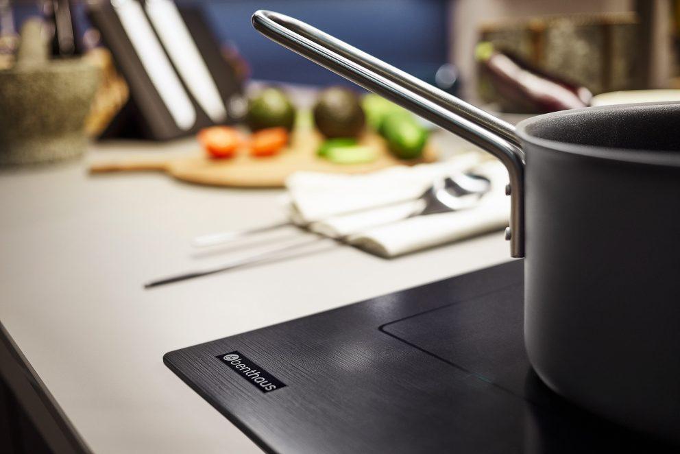 Die innovativen Modelle von benthaus, wie die Studio-Line und die Pro-Line, integrieren einen Muldenlüfter direkt ins Kochfeld. Dies bietet mehrere Vorteile: